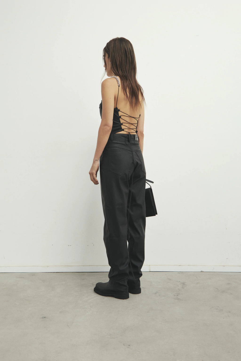 Importante! Tener en cuenta que este material al tener una acabado 100% sintetico (no tejido) no posee la resistencia que tienen otros tejidos como el denim, gabardinas, bengalinas, etc. Por ellos se recomienda usar una silueta holgada.