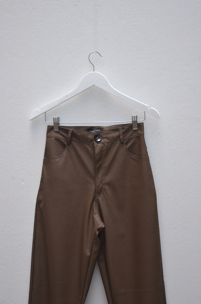 Pantalón de ecocuero. Corte recto, con tiro alto. Elastizado.