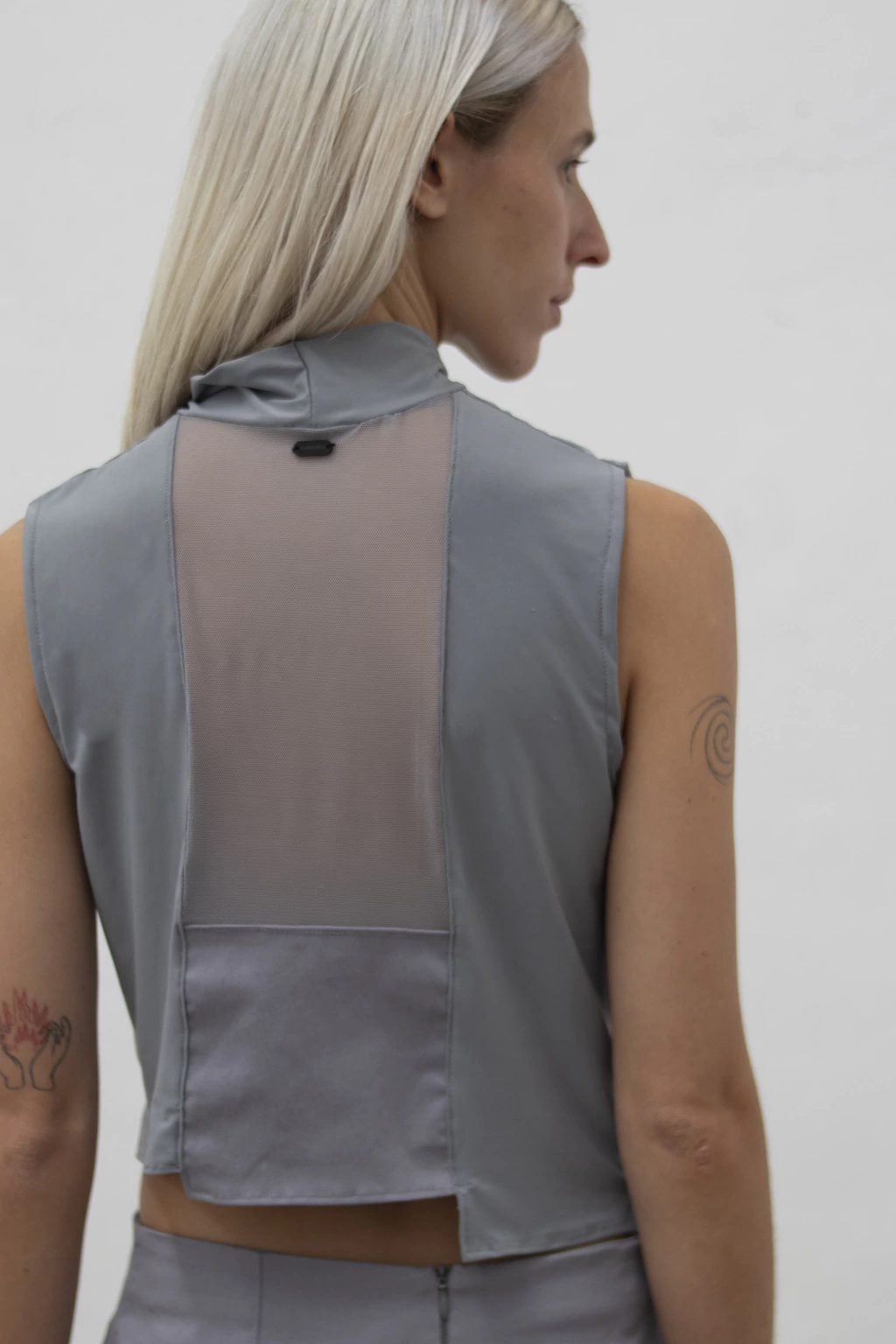 El Top Partes en una prenda con una moldería construida a partir de recortes encastrados. Es una pieza de diseño con la cual vas a sentirte única. Está confeccionado con la mezcla de 3 textiles: bengalina, microtul y Lycra de seda.